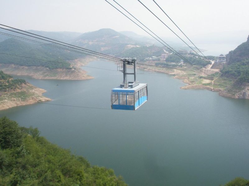 2015年8月份竣工完成。索道位于河南濟(jì)源市黃河三峽景區(qū),索道型式為雙承載雙牽引四線往復(fù)車廂索道,線路水平距離786米,線路高差55米,最大運(yùn)行速度7米/秒,單向小時(shí)運(yùn)量可達(dá)1029人/小時(shí)。索道吊廂可容100人,為目前國(guó)內(nèi)最大的國(guó)產(chǎn)往復(fù)式索道。