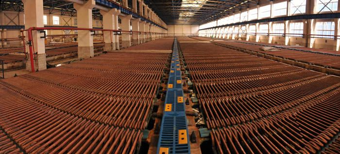 Ø 云南銅業(yè)有限公司18萬t/a電銅,采用中板永久陰極工藝,投產(chǎn)時(shí)間2010年。