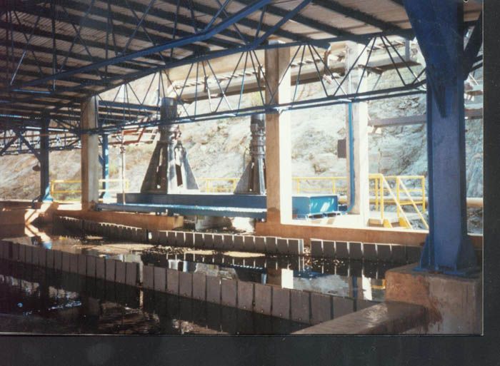 Ø 江西銅業(yè)公司德興銅礦為含銅廢石堆浸,該“含銅廢石堆浸-萃取-電積廠”工程,為國(guó)內(nèi)首家采用生物技術(shù)浸出原生硫化礦廢石的廠家,年產(chǎn)電銅2000t/a,品質(zhì)達(dá)到A級(jí)銅標(biāo)準(zhǔn)。項(xiàng)目采用的大型萃取箱(設(shè)計(jì)溶液流量320m3/h)、萃取箱混合室雙混,直徑大板永久陰極等技術(shù)獲得國(guó)家有色金屬工業(yè)局科技進(jìn)步二等獎(jiǎng)。1997年建廠投產(chǎn)。